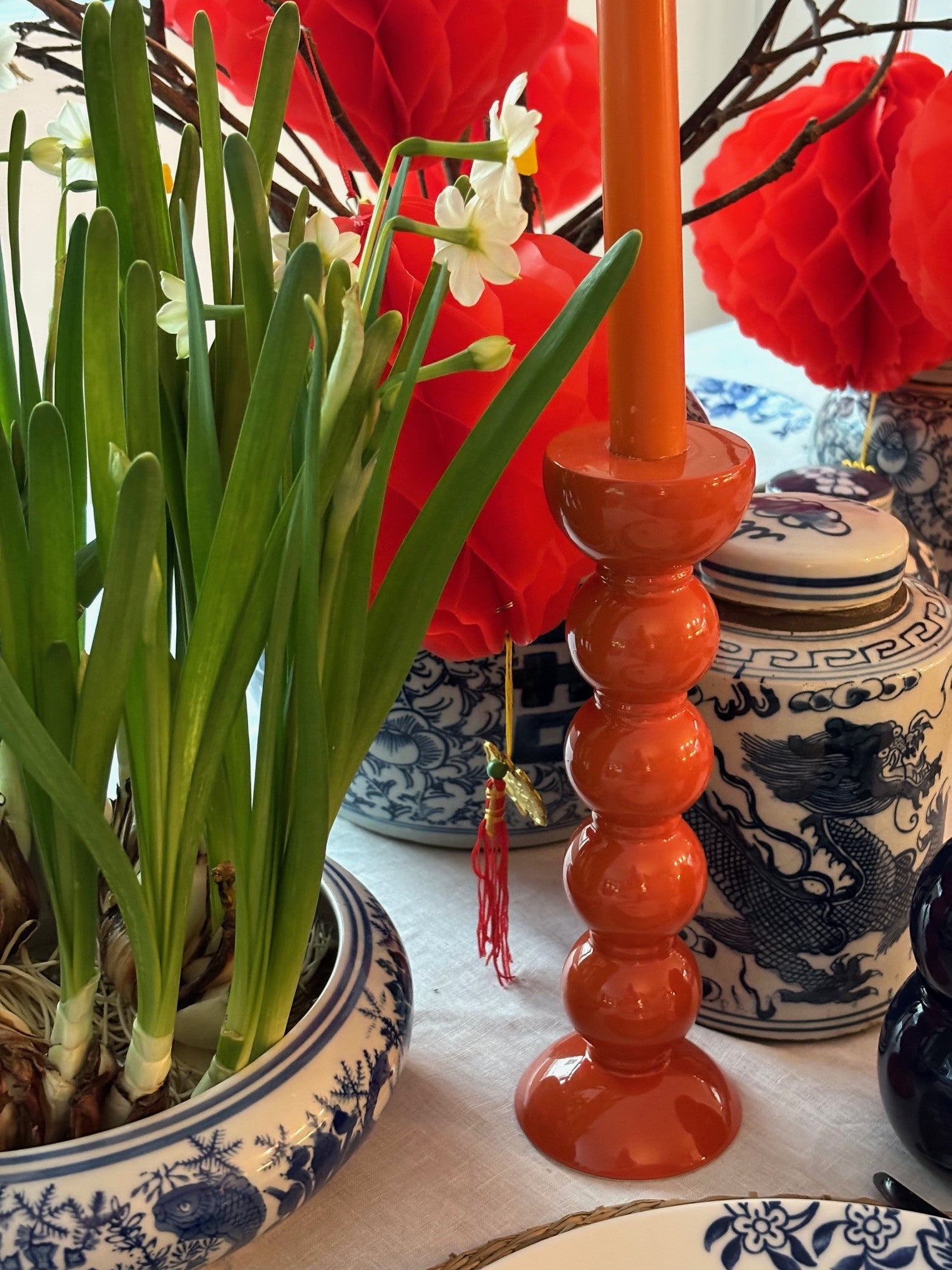 Elevate your table setting with these tall, lacquered bobbin shaped candlesticks. Stylish, elegant and colourful, these candlesticks are the ultimate accessory to your table setting or sideboard..