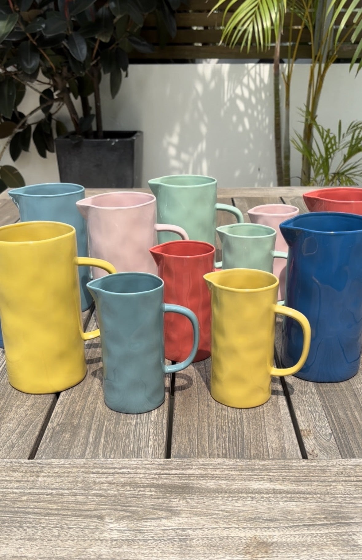 Perfect for relaxed entertaining, these hand painted stoneware jugs are the ideal way to bring a bit of colour to your table and home. Available in 6 glorious colours and 2 sizes, there is something to suit every occasion and every mood. Fill with water or your favourite flowers and have fun experimenting with different colours and sizes..