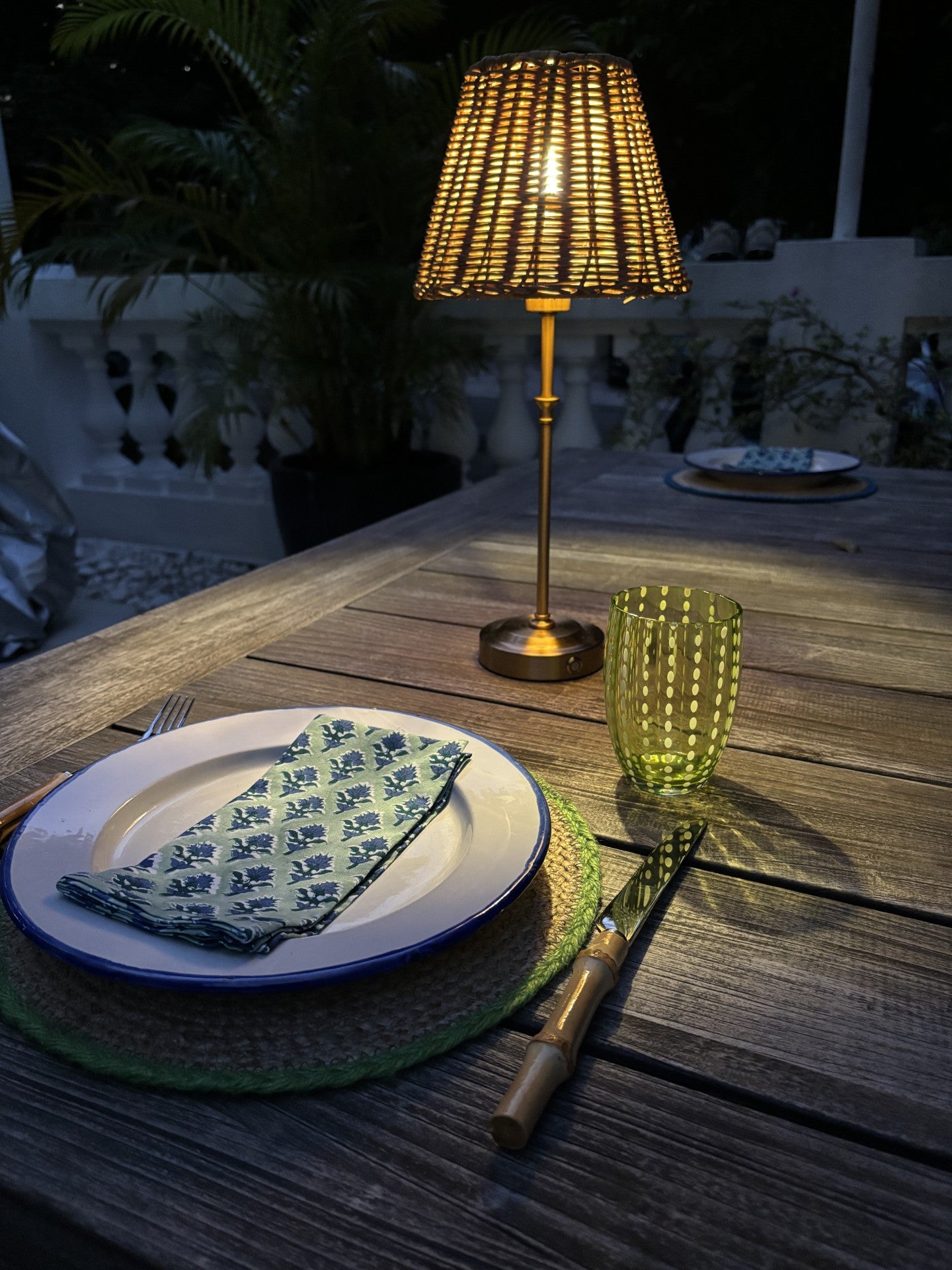 Enhance your dining experience with our rechargeable cordless lamps. With their sleek design and beautiful handmade lampshades, these versatile lamps are the must-have for any home. Use on your dining table to create ambient lighting or outside when it's just too windy for candles. They also look great next to your bed, on a coffee table or a side table....frankly, wherever you need a bit of light. No plug necessary so no messy wires either - genius!